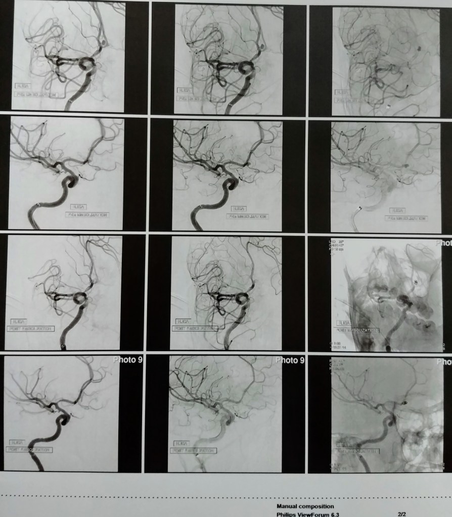 Can you spot the 2 aneurysms? The big balloon was the largest and below it was the smallest one that is still intact. This is one of the pictures from my angio showing the aneurysm before the embolization. Zoom in close for details.