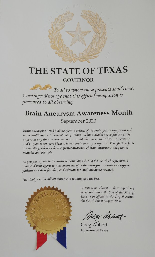 If you are a brain aneurysm survivor, caregiver or loved one and you’re indeed of a support group, please join our Facebook page- Brain Aneurysm survivors https://www.facebook.com/groups/BrainAneurysmSurvivors/?ref=share where you will be treated like family and receive a wealth of information and support. We have members from all over the world.